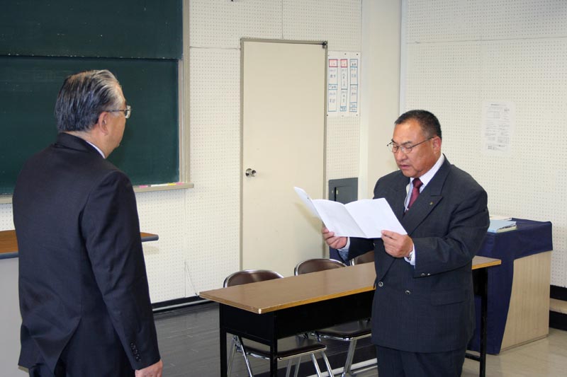 森同窓会長より目録の授与