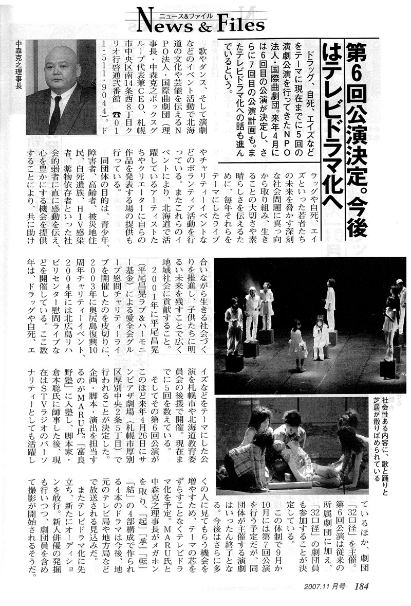 19期中森克之氏(同窓会会長代行)が理事長を務めるNPO法人の活動が財界さっぽろにて紹介
