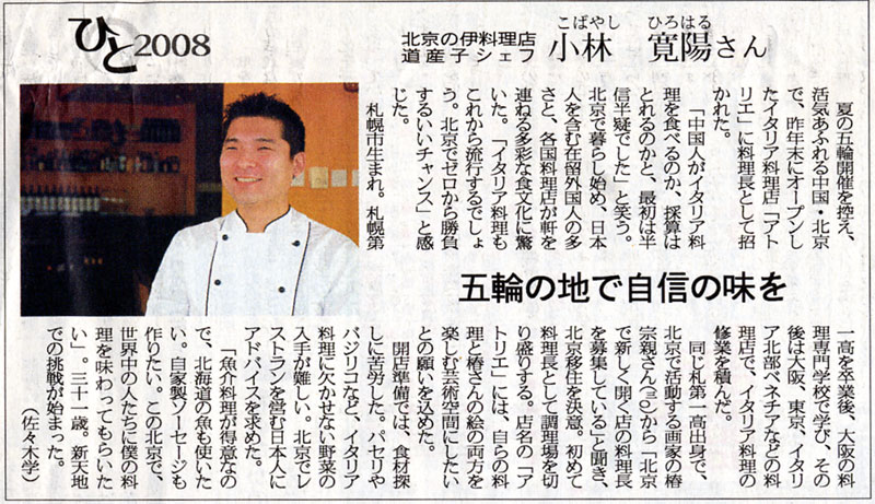 小林寛陽氏が北海道新聞「ひと2008」にて紹介されました。