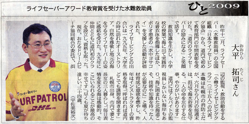 33期大平拓司氏が北海道新聞('09.01.27 朝刊)にて紹介