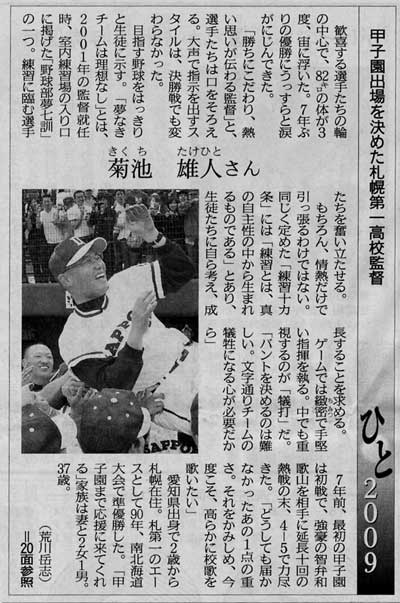 31期菊池雄人氏が北海道新聞('09.07.22 朝刊)にて紹介