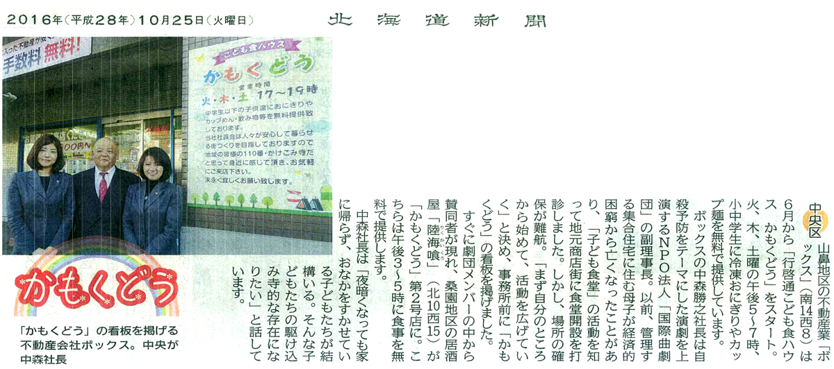 2016.10.25 北海道新聞(10/25)掲載