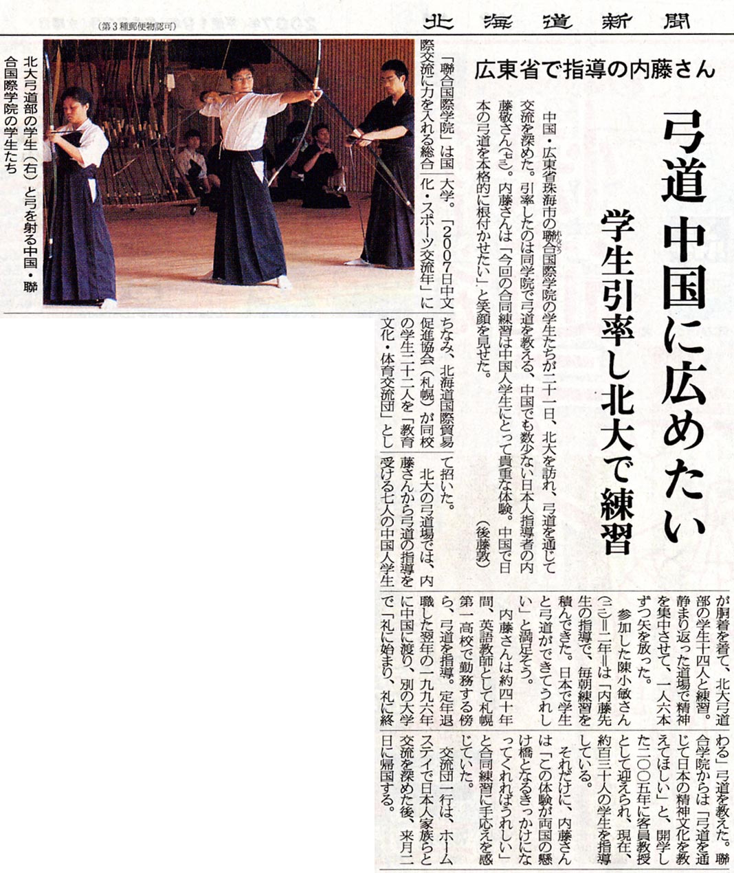 平成19年8月22日(水)北海道新聞(朝刊)掲載