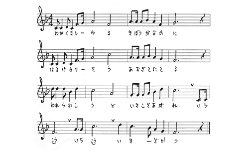 3 桜の花の かおりも高く 正しき道を 歩くぞたのし