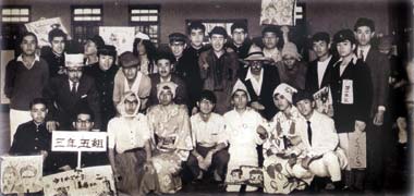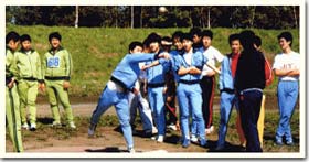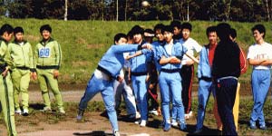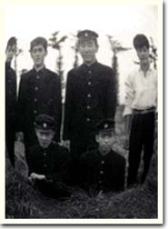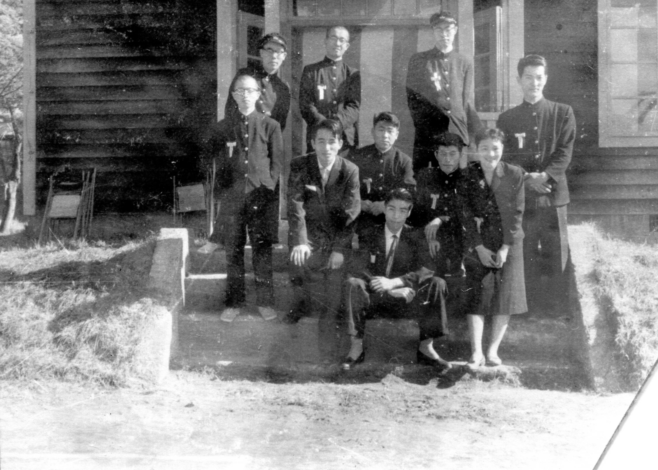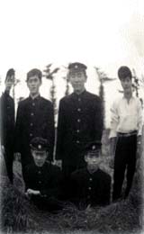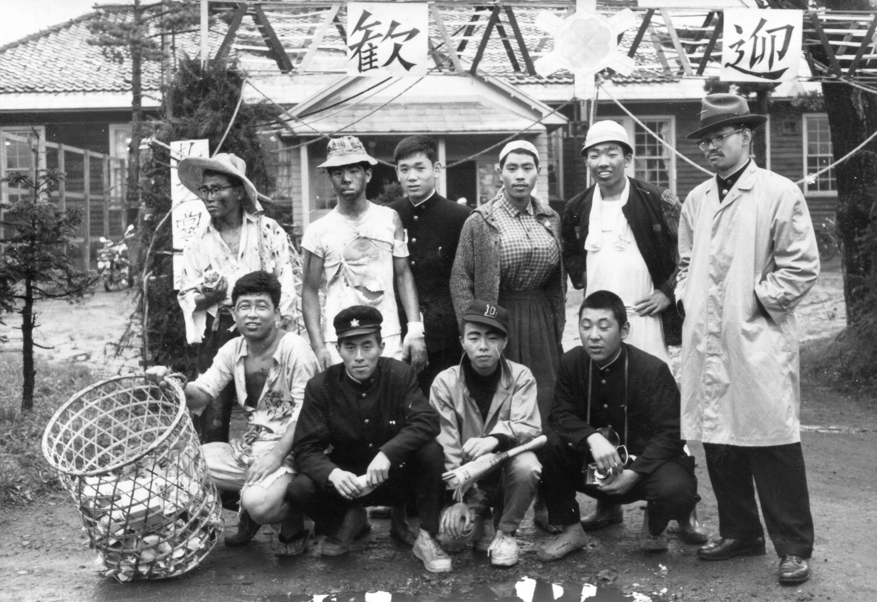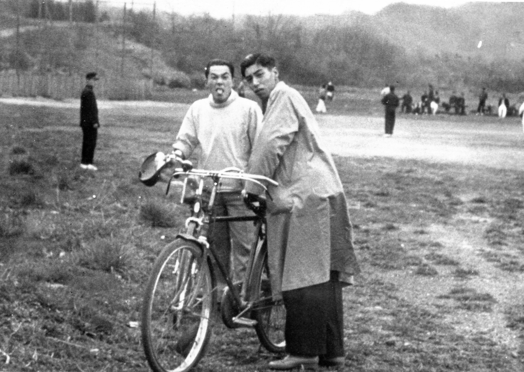 先生方は自転車で引率(舌をだしているのが体育教師の小原格先生)