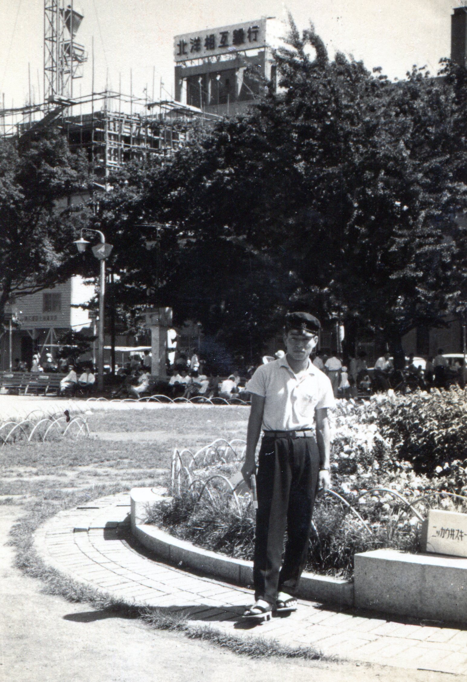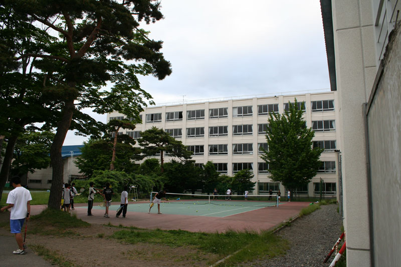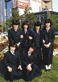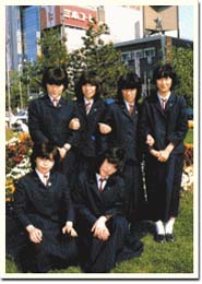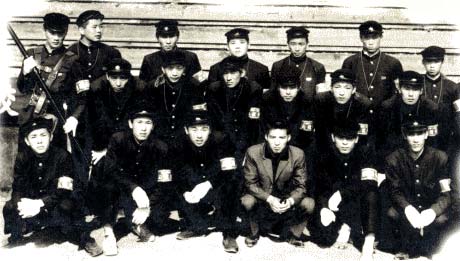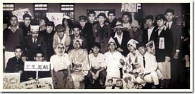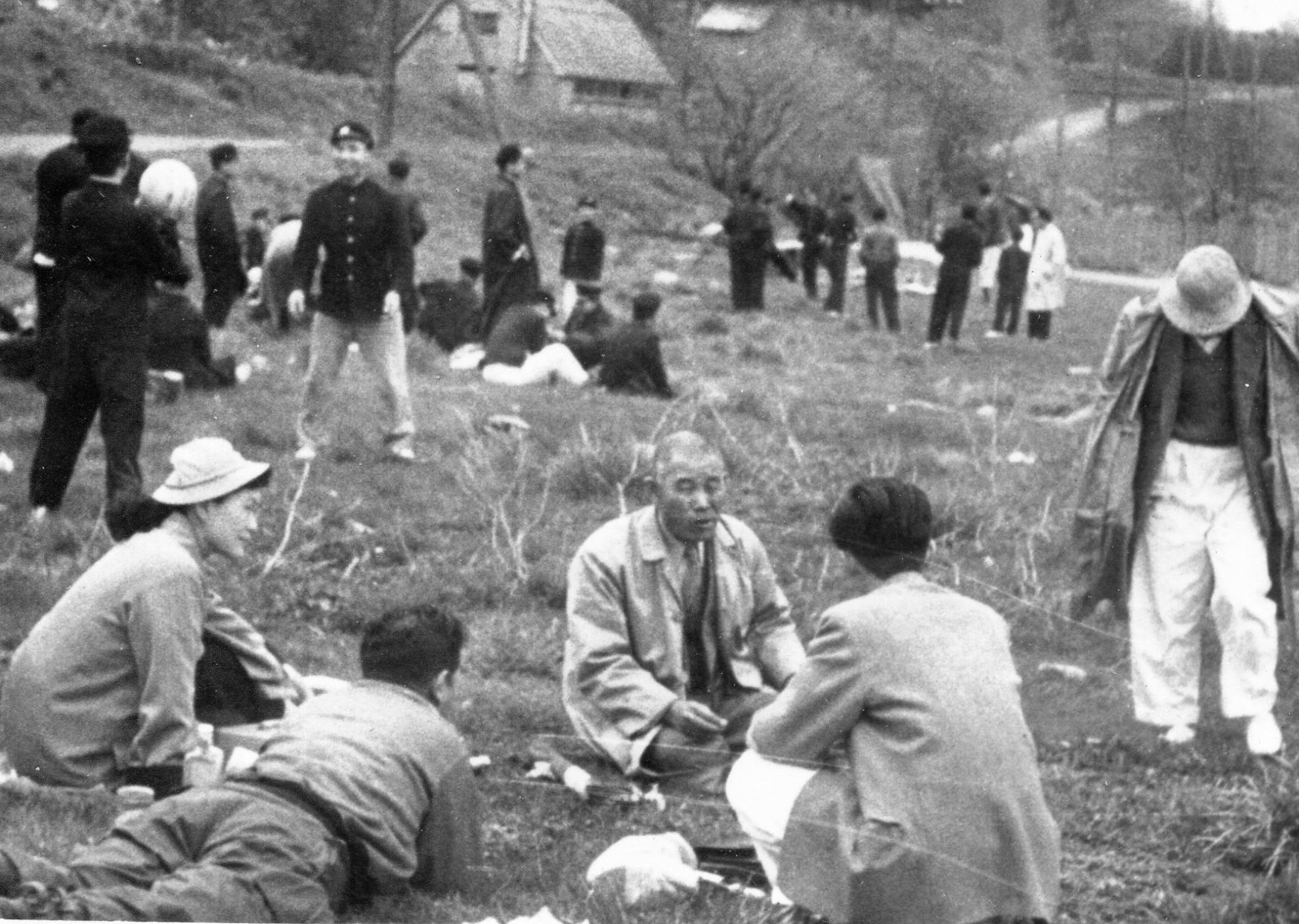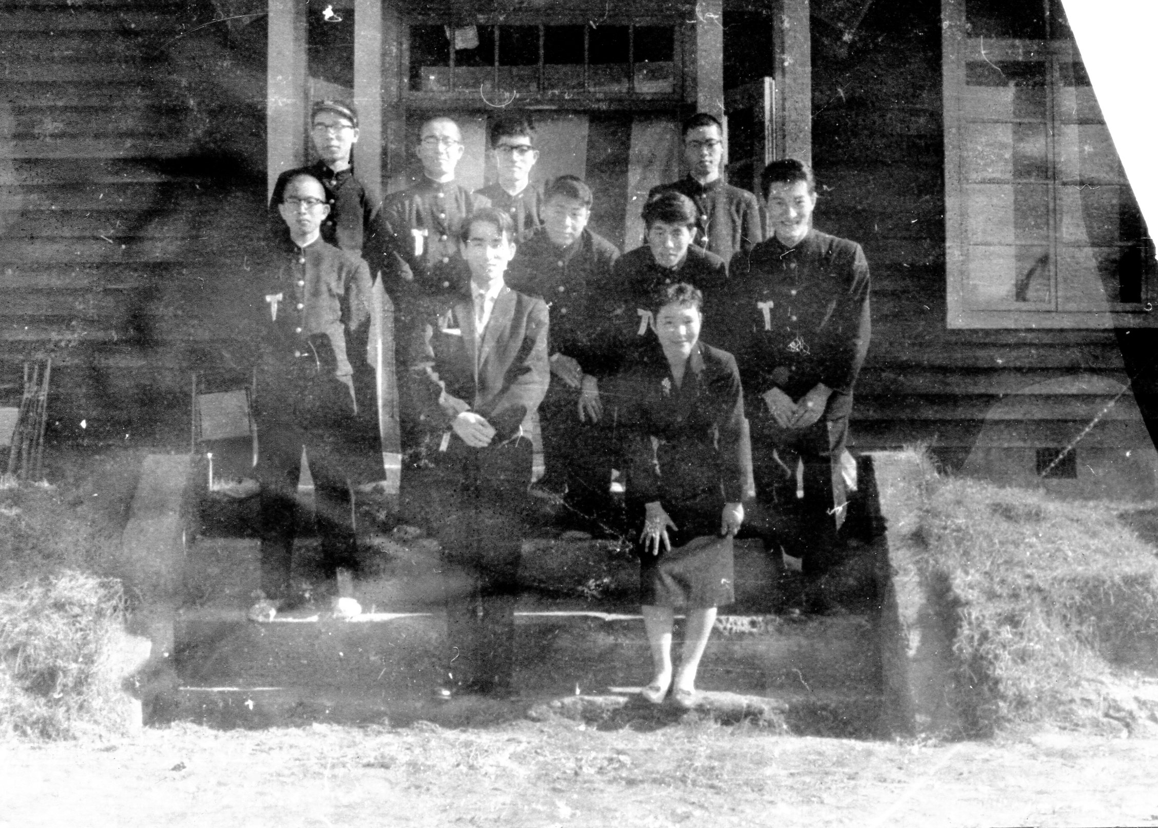 先生方は自転車で引率(舌をだしているのが体育教師の小原格先生)