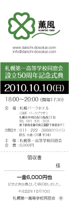 札幌第一高校同窓会は2010年に同窓会設立50周年を迎えます。