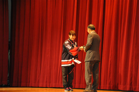 同窓会から記念品を贈呈しました。